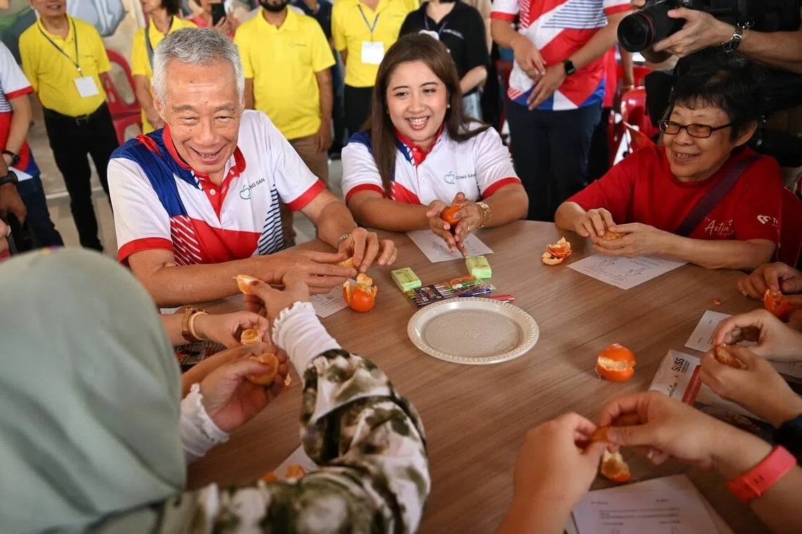 🔸 Senior Minister Lee Hsien Loong and Ang Mo Kio GRC MP Nadia Ahmad Samdin joining residents in a mindfulness activity at the official opening of the upgraded Cheng San Community Club